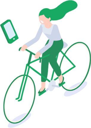 スマホを持って「歩行」や「自転車」で移動することで、健康を増進する。