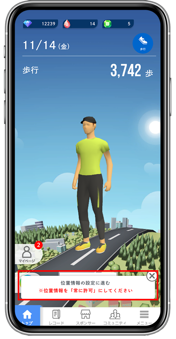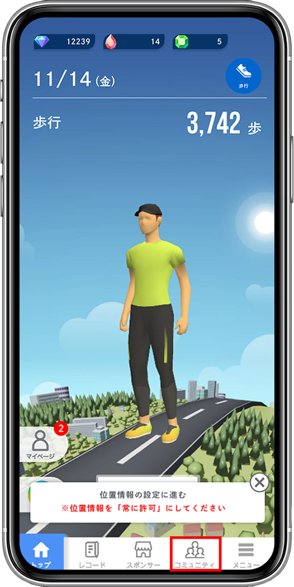 ※「コミュニティの参加」と「位置情報の設定」が必須です。
